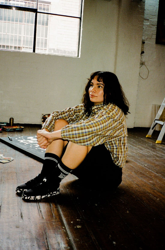 This collaboration brings Aretha’s art into an everyday context, transforming her visual language into something wearable and expressive. The pieces act as an extension of the stories she paints across walls around the world, inviting people to carry that sense of culture, creativity and narrative with them wherever they go.