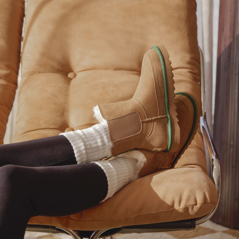 Made for staying SNUGG this winter our Gusset Boot will keep your feet toasty and warm. Made from 100% Genuine Australian twin-face Sheepskin, breathable fleece lining and supportive sole suitable for both indoor and outdoor use. These boots also feature a stacked sole and our iconic green and gold webbing.